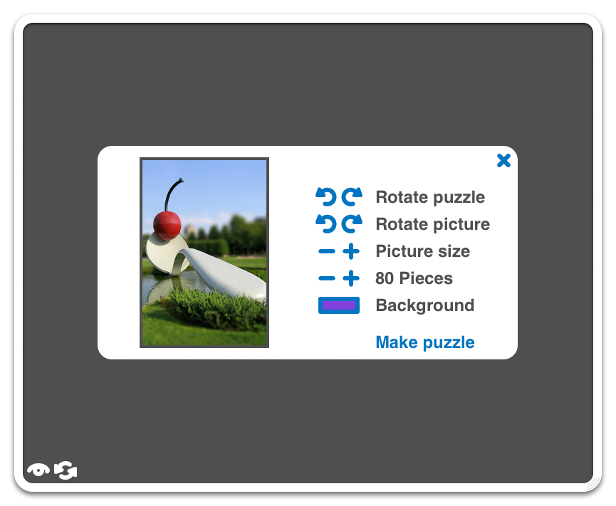 The Puzzle Widget was the final desktop Widget to be produced by Yahoo. It showcased new drawing features in the Widget Engine and improvements to the Widget DOM. Users could drag and drop their own images to the Widget, choose scaling, rotation, and number of pieces and have a custom puzzle generated.